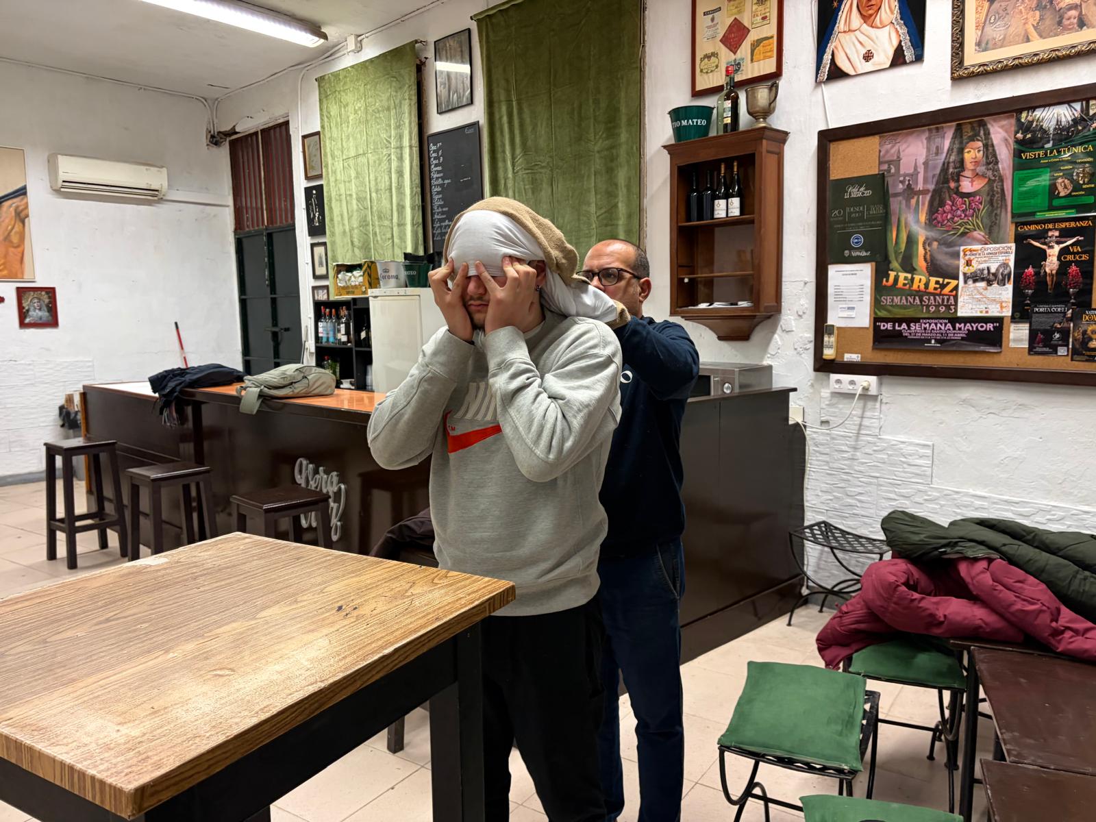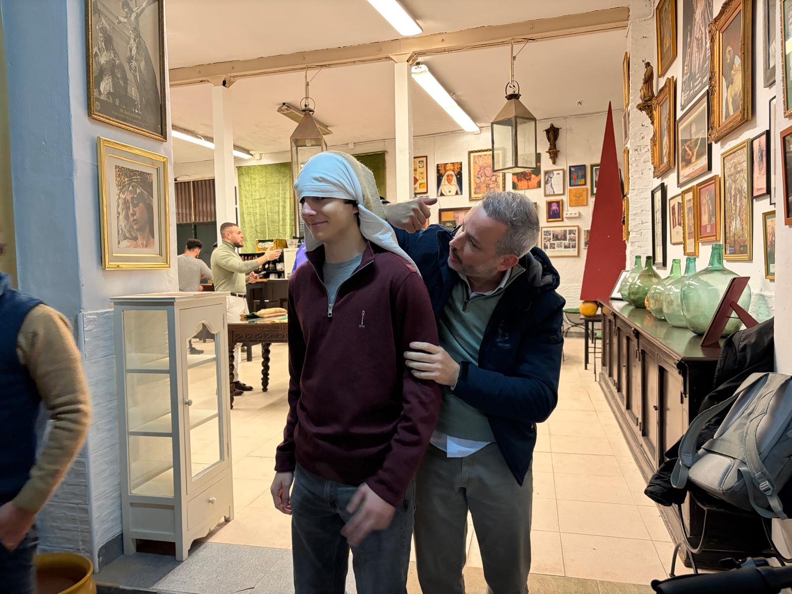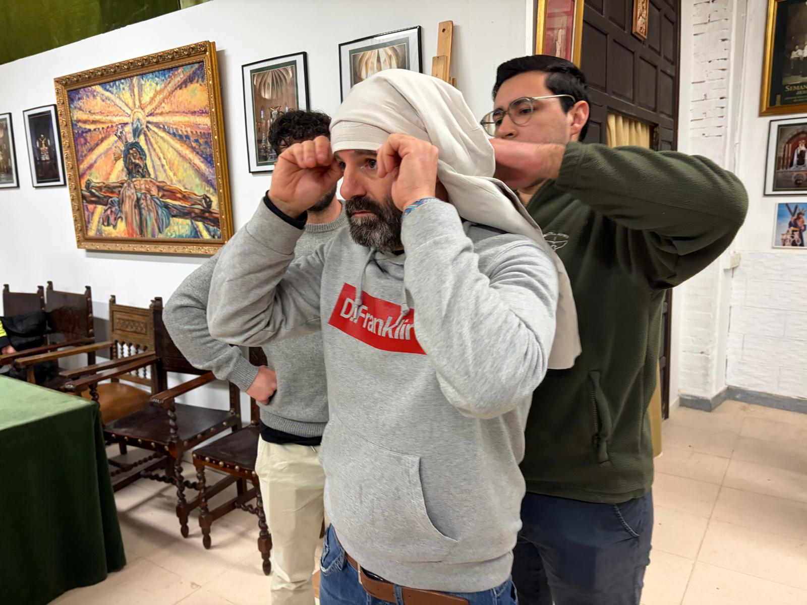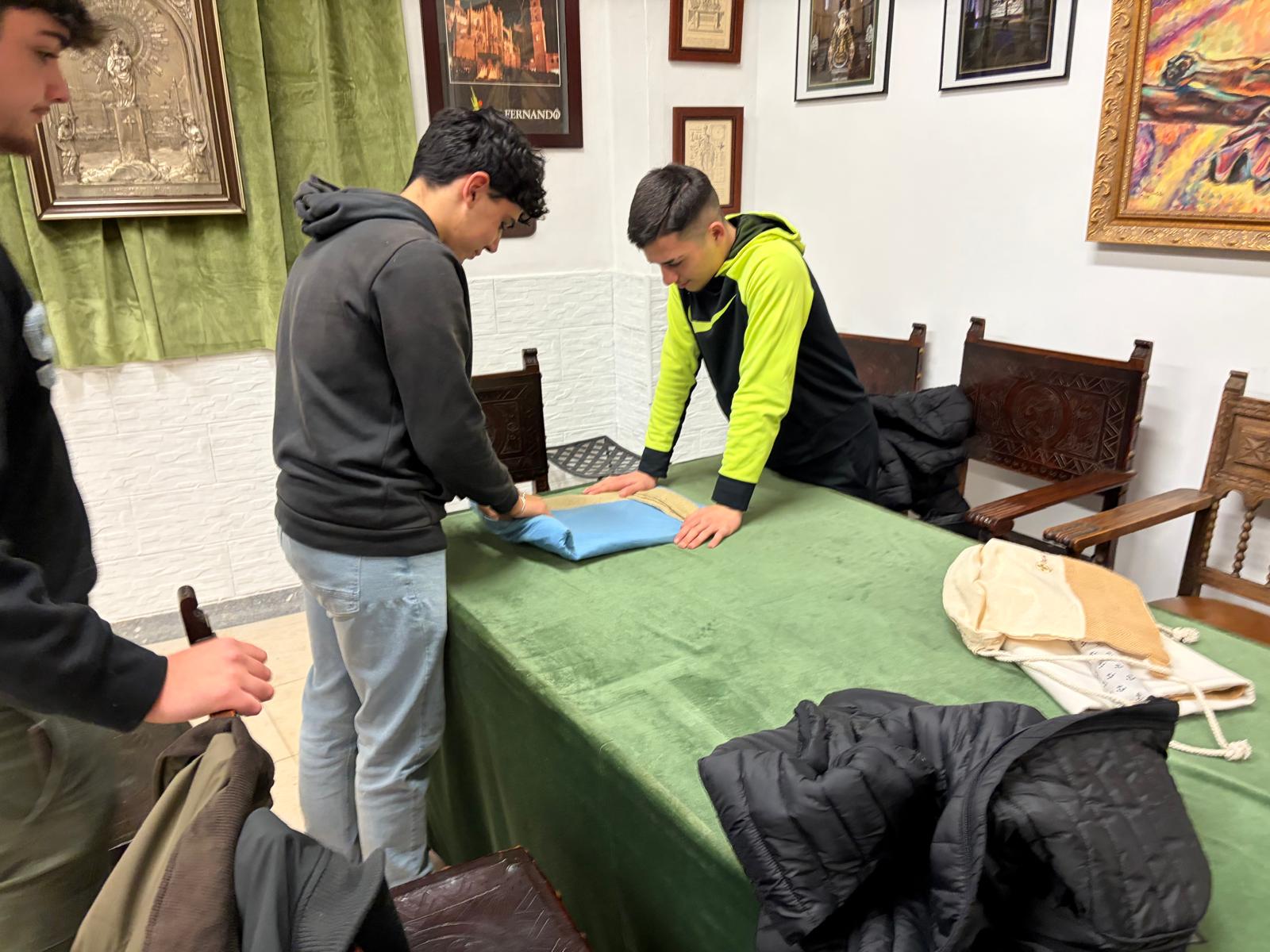 En la jornada de este jueves 8 de enero, el equipo de Javier Pérez, capataz del paso de misterio del Santísimo Cristo de la Esperanza, ha procedido a realizar la primera jornada para aprender a realizar y llevar un costal en nuestra casa de hermandad.