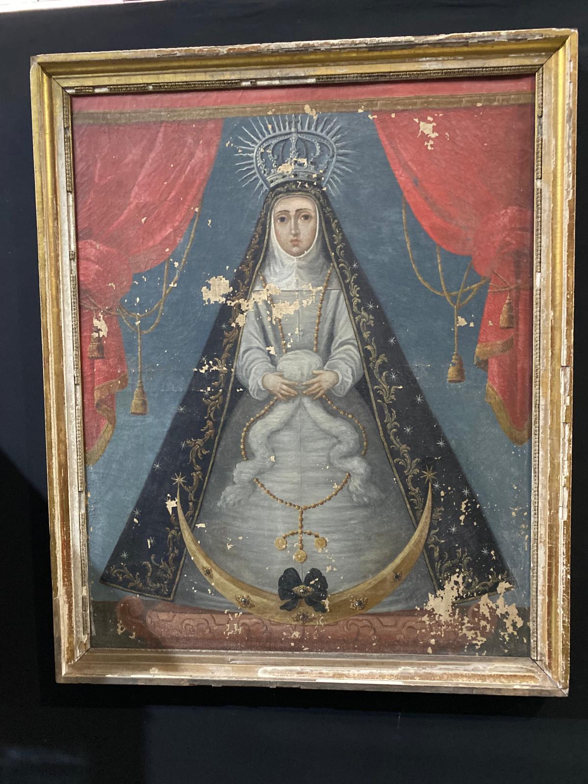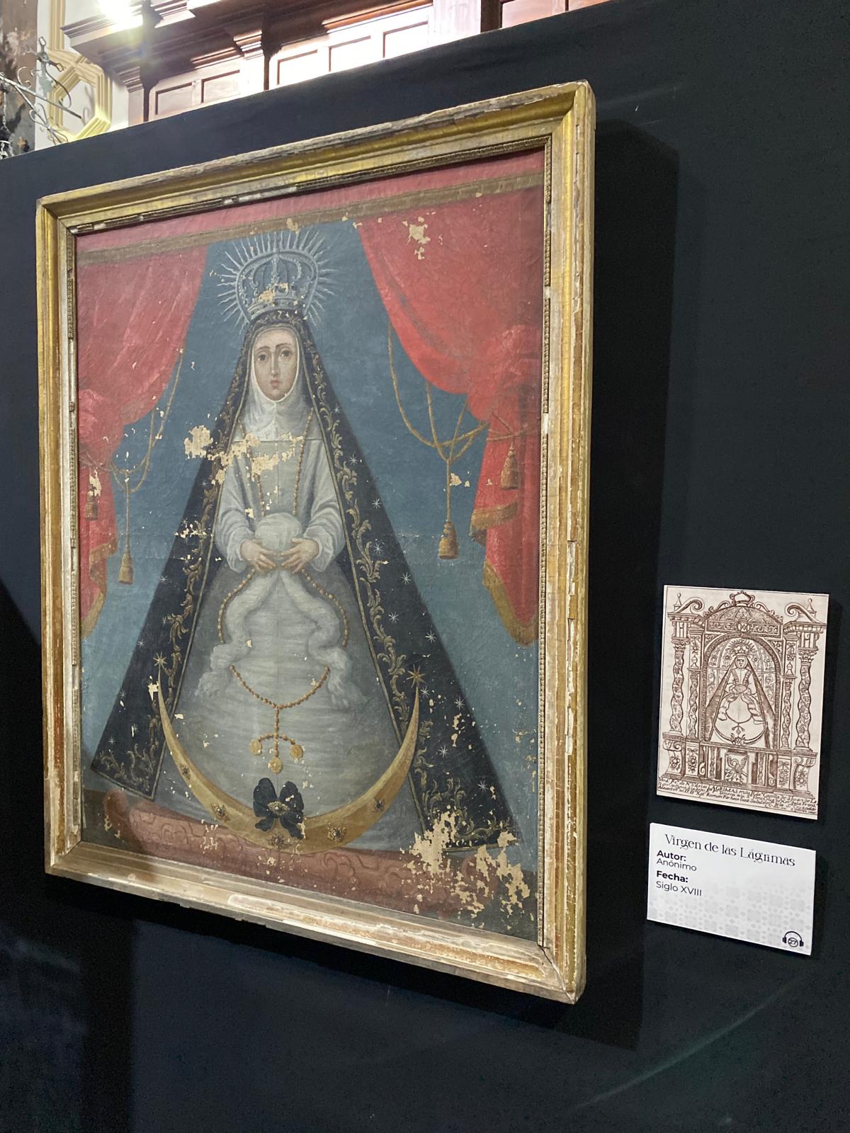 Entre las obras expuestas, se encuentra este magnifico cuadro de Nuestra Señora de las Lágrimas que se puede apreciar en las imágenes que acompañan a esta información.